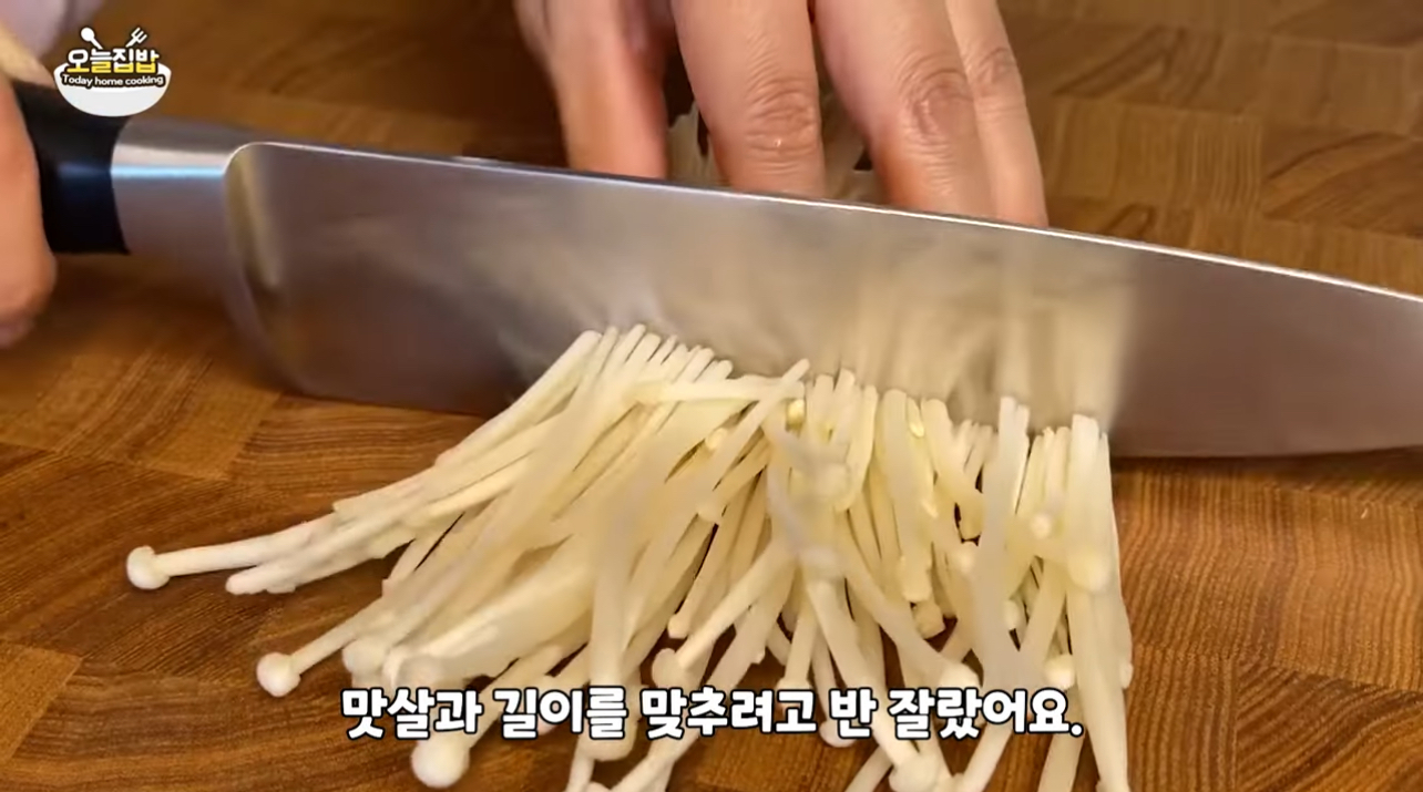 2. 팽이버섯: 밑둥을 잘라 흐르는 물에 씻은 후 반잘라 준비해요