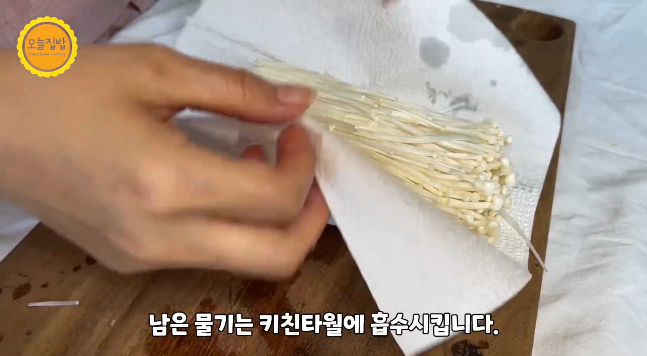 물기를 꼭 짜거나 키친타월에 물기를 흡수 시킵니다.
