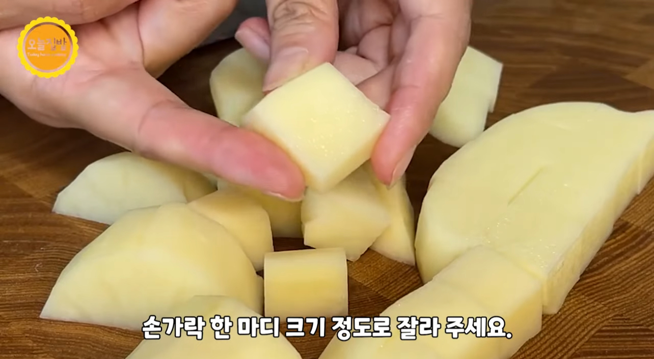 손가락 한마디 크기 정도로 깍뚝썰기 합니다