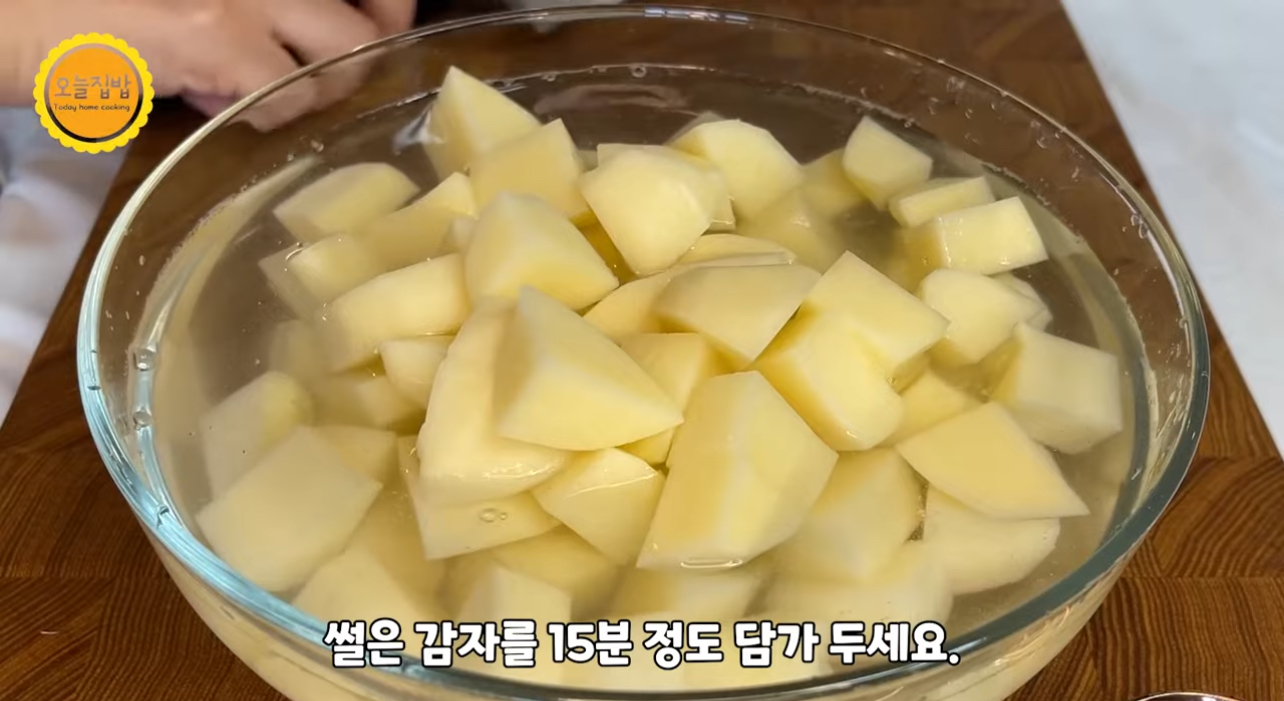 (소금물에 담궈 두면 감자에 소금간도 배고, 전분기가 빠지면서 더 쫀득쫀득 해 집니다.