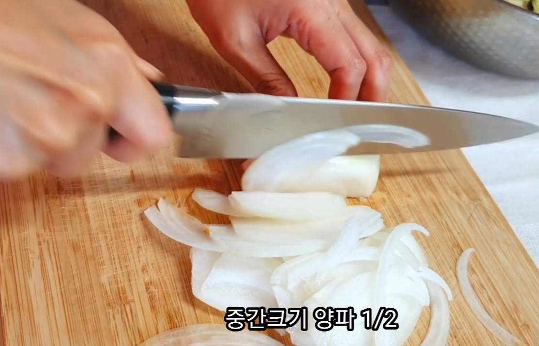 2. 가지가 절여질 동안 다른 야채들도 3~4CM 길이로 채썰어 준비한다