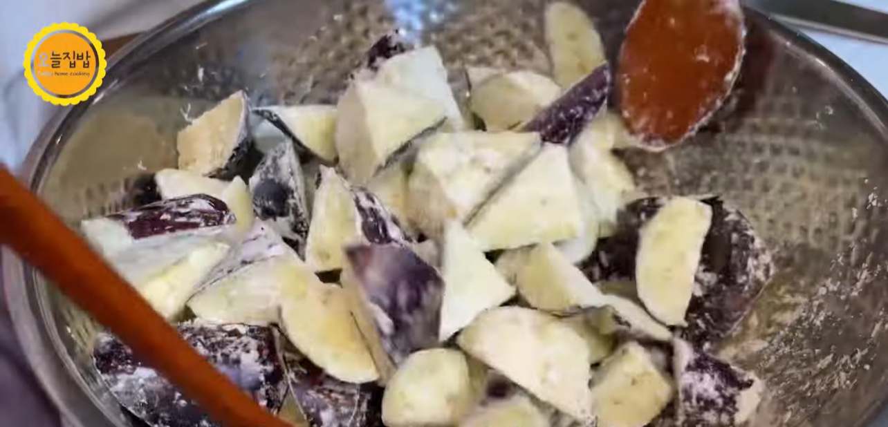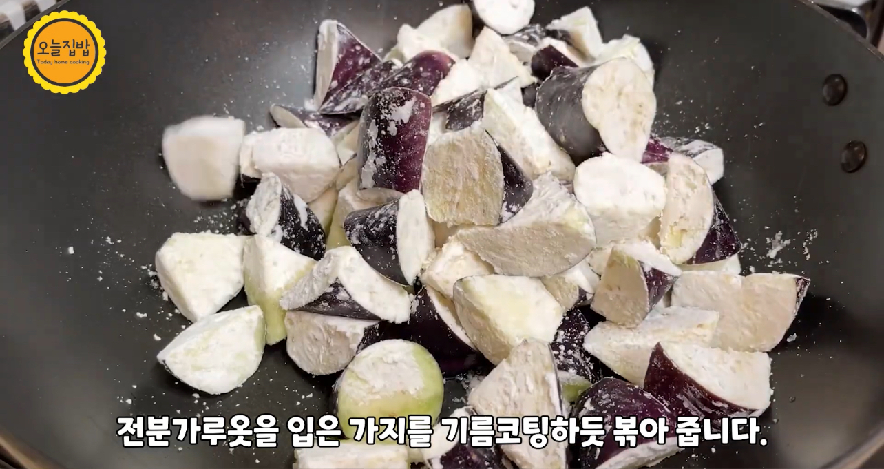 가지에 전분가루 코팅 시키고 조금 남았죠?