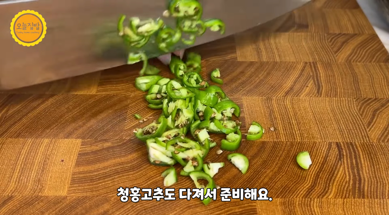 5. 청홍고추도 다져서 준비해요