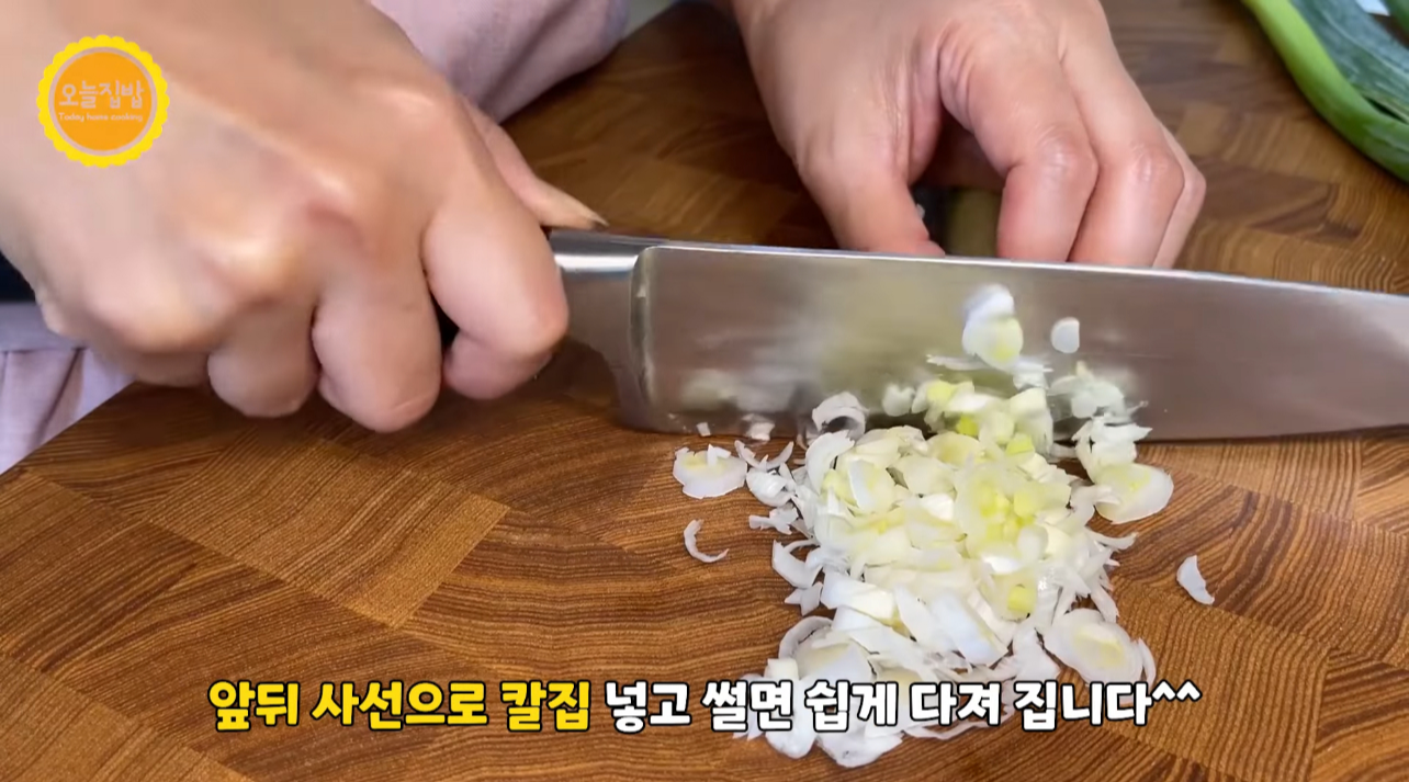 팁) (위,아래 사선으로 칼집을 넣은 후 썰면 다지기 쉬워요)