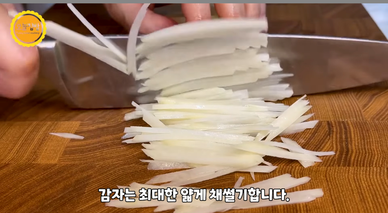 감자: 감자는 최대한 얇게 채썰기 합니다.