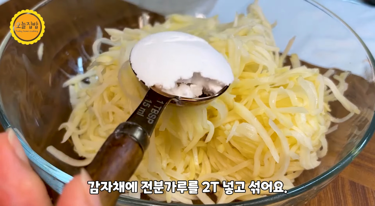 감자채에 전분가루 2T 넣고 잘 섞어 주세요.