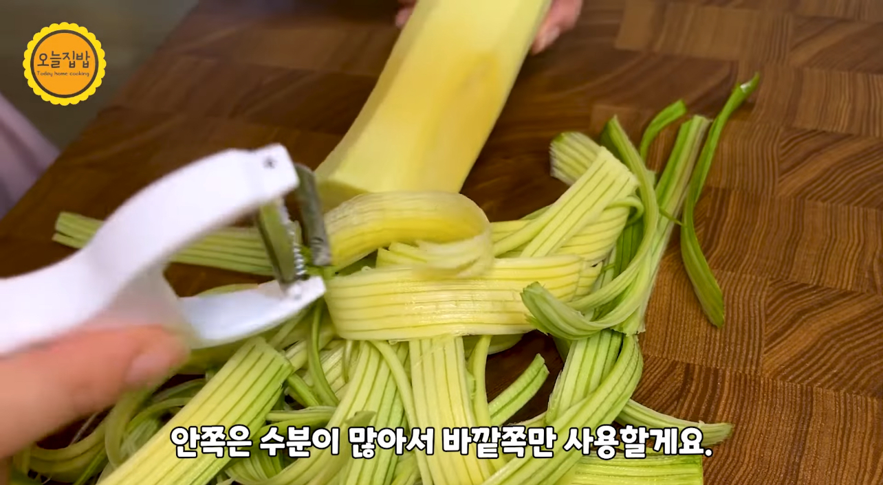 (안 쪽은 수분이 많아 바깥쪽만 사용합니다. 속부분은 잘 보관 해 뒀다가 찌개 끓일 때 사용하세요~~^^)