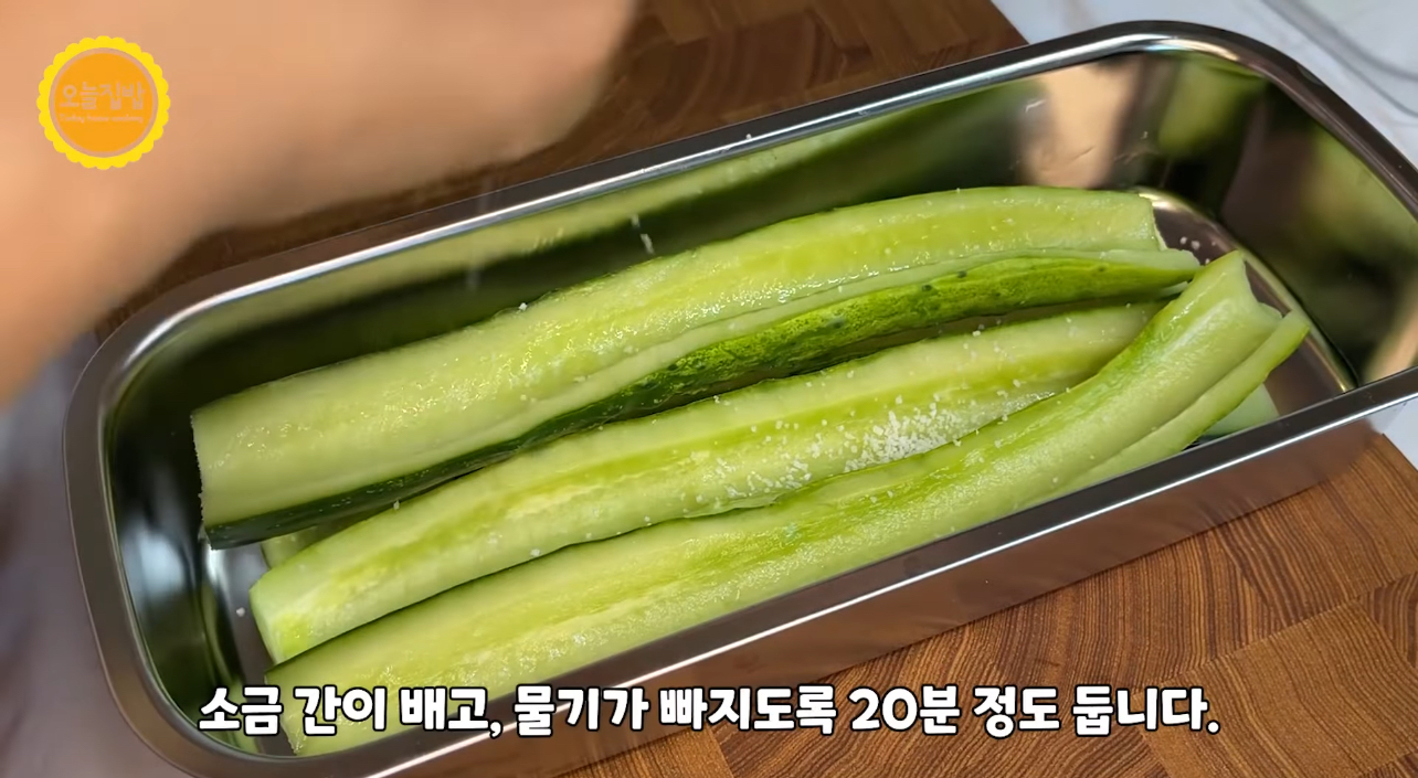 오이에 소금 1/2T 뿌려 20분간 절인 후