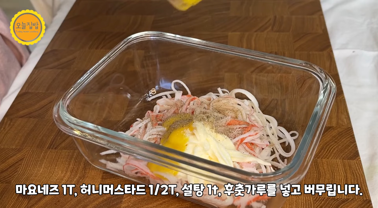 마요네즈 1T, 머스타드 1/2T, 깨소금 1T, 참기름 1T,, 소금, 설탕, 후추가루 조금씩