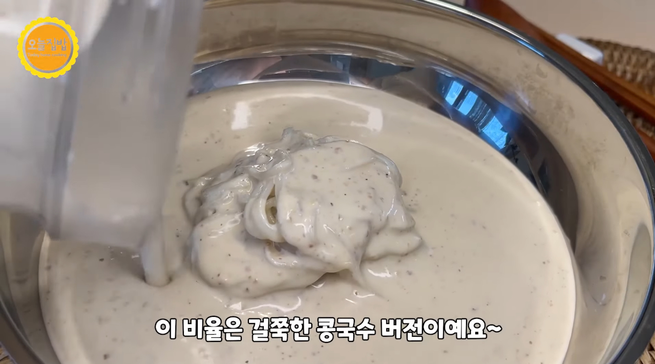 걸쭉한 콩물 보다는 묽은 콩국물 좋아하시는 분들은 두유나 물을 추가 하시면 되니