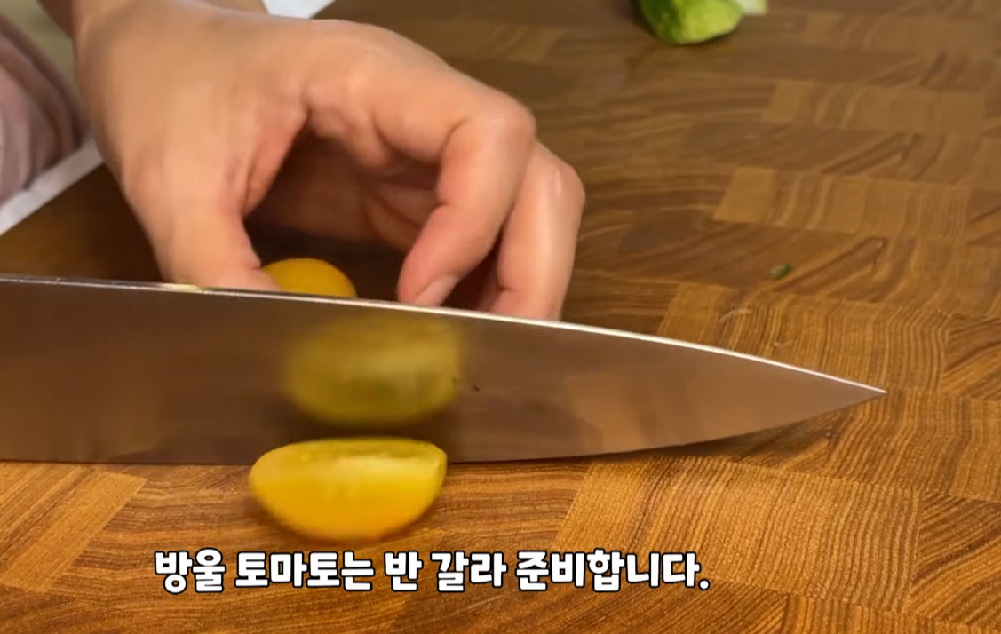 방울 토마토도 반갈라 준비합니다.