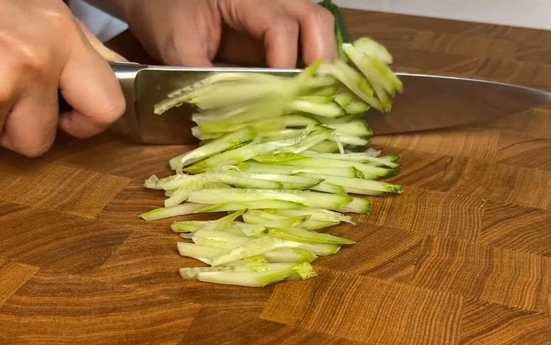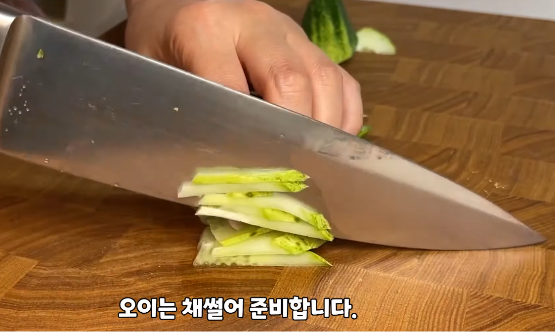 오이는 가늘게 채썰어 준비합니다.