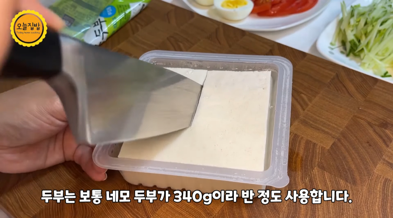 두부는 보통 네모 두부가 340g 정도라 반 정도만 사용하시면 됩니다.